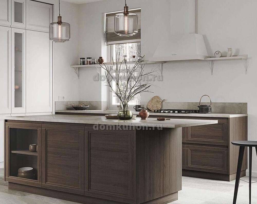 Познакомьтесь с кухней "Катрин" — где эстетика современного дизайна сочетается с функциональностью. Этот стиль выражен в гармоничном сочетании темно-коричневых шкафов и светлых столешниц, дополненных изысканными подвесными светильниками, которые добавляют нотку элегантности. Просторный остров предлагает обильное рабочее пространство и место для хранения, делая его не только стильным, но и максимально удобным для ежедневного использования. Кухня "Катрин" — это идеальный выбор для тех, кто ищет баланс между современным стилем и домашним уютом.